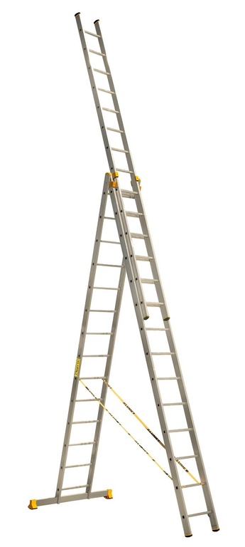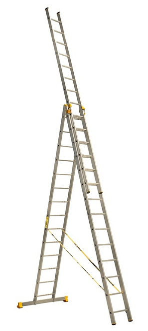 Лестницы 3-х секционные алюминиевые подходят для применения в промышленной сфере, произведены под строгим контролем качества и отвечают высоким требованиям безопасности и качества производства.