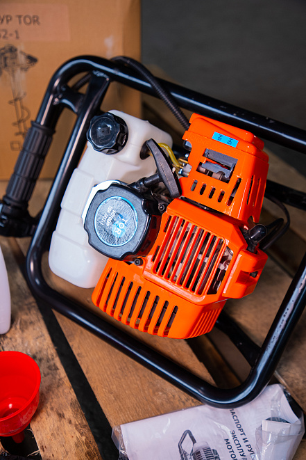 Мотобур TOR JH52-1 без шнека с объемом двигателя 52см3 и максимальной мощностью 1,8 кВт.